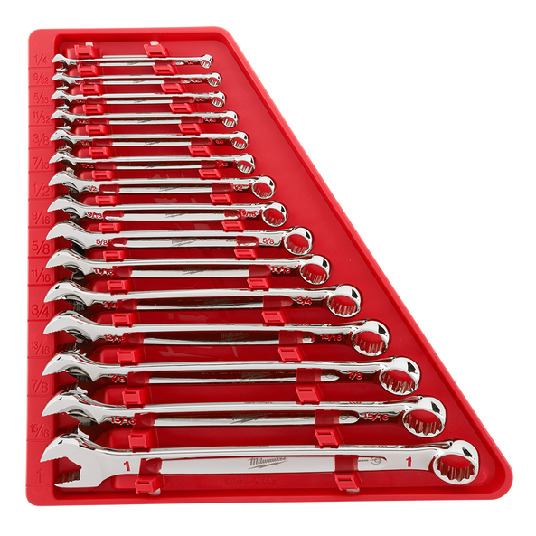 MILWAUKEE has designed our Combination Wrenches from the ground up, delivering maximum torque and ultimate user comfort. The MAX BITE Open-End Grip improves the wrench’s grip on nuts and bolts, and the geometry reduces rounding and stripping. MAX BITE offers 25% More Torque than competitive wrench designs. The Comfortable I-Beam Handle Design allows superior user comfort, even while applying high torque. MILWAUKEE wrenches feature Ink-Filled Size Labels for easy size identification, and quick distinction between SAE and metric sets. The 15pc kits come in a storage tray designed for Long-Term Storage, keeping your tool chest organised. Standing behind our products, MILWAUKEE offers a Lifetime Guarantee on all of our Combination Wrench Sets.