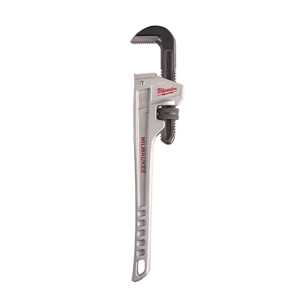 MILWAUKEE 48227218, 457mm (18”) Aluminum Pipe Wrench has been designed from the ground up to offer maximum productivity to the professional user. The 457mm Aluminum Pipe Wrench features and overbite jaw design offering the largest gripping surface. Dual coil springs offer maximum durability and tool life, and the ergonomic handle form has been designed for maximum comfort and won’t dig into the palms. Through hardened jaws deliver increased grip and tooth durability, and a tether-ready handle loop makes the MILWAUKEE 48227218 perfect for the toughest of jobsites. MILWAUKEE stands behind their product and offers a Limited Lifetime Warranty with all pipe wrenches.