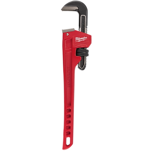 Milwaukee 48-22-7118, 18” Steel Pipe Wrench has been designed from the ground up to offer maximum productivity to the professional user. The 18” Steel Pipe Wrench features and overbite jaw design offering the largest gripping surface. Dual coil springs offer maximum durability and tool life, and the ergonomic handle form has been designed for maximum comfort and won’t dig into the palms. Through hardened jaws deliver increased grip and tooth durability, and a tether-ready handle loop makes the Milwaukee 48-22-7118 perfect for the toughest of jobsites. Milwaukee stands behind their product and offers a Limited Lifetime Warranty with all pipe wrenches. The Milwaukee 48-22-7118 includes (1) 48-22-7118 18” Steel Straight Pipe Wrench.