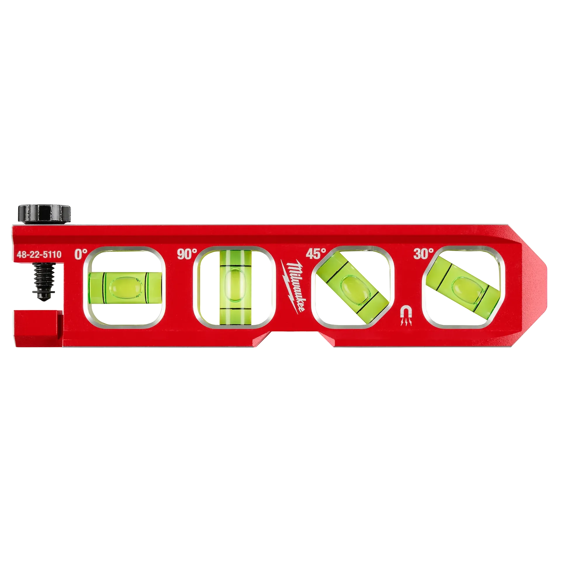 Our 6.5” Clamp-On Ingot Torpedo Level for pipe features secure, enlarged rare earth magnets and is the ideal solution for making multiple, even bends in conduit. This level is equipped with a fixed wing screw that prevents the screw from being lost on the jobsite. The Clamp-On Ingot Torpedo Level has precision-machined surfaces. It also features impact-resistant pipes that display 0°, 30°, 45°, and 90° angles and has an aluminum frame that provides strength and durability. The level includes an additional pipe slot and weld bead clearance to make working with pipe easier. The Milwaukee® Clamp-On Ingot Torpedo Level for pipe is backed by a limited lifetime warranty.