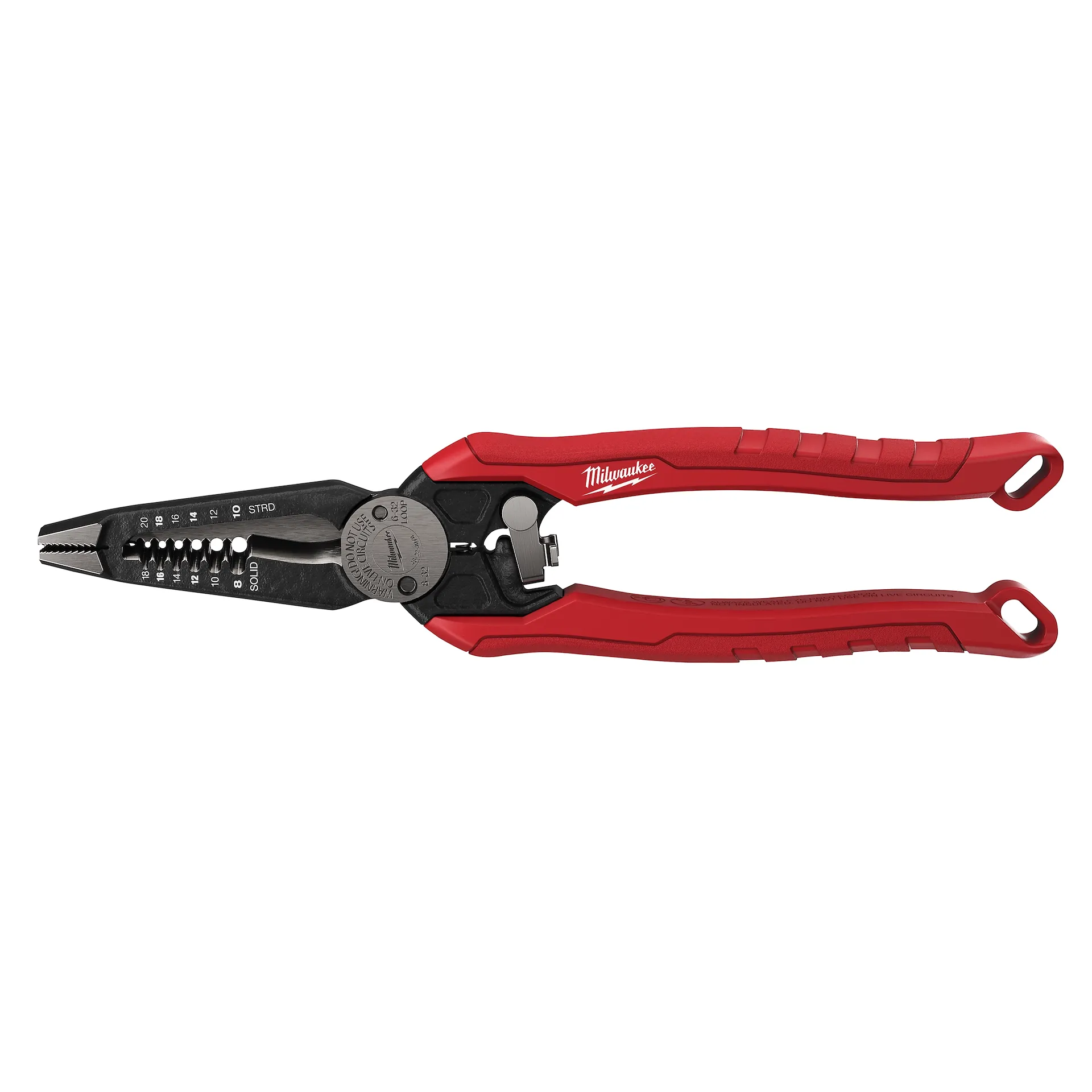 Our 7-in-1 High-Leverage Combination Pliers feature seven core functions for electrical installation. The wide jaw pliers make grabbing and twisting wire easy, while the crimper provides you with added functionality when working with both insulated and non-insulated terminals. The wire cutter, wire stripper, and loop maker allow you to make quick wire preparation. The built-in reamer allows you to ream ½” through 1” conduit, while the bolt cutter cuts #6 and #8 bolts. A swing-lock design delivers fast, one-handed operation, and the high-leverage handles make cutting and crimping easier. The MILWAUKEE® 7-in-1 electrical pliers provide maximum productivity and are perfect for the toughest jobsites.